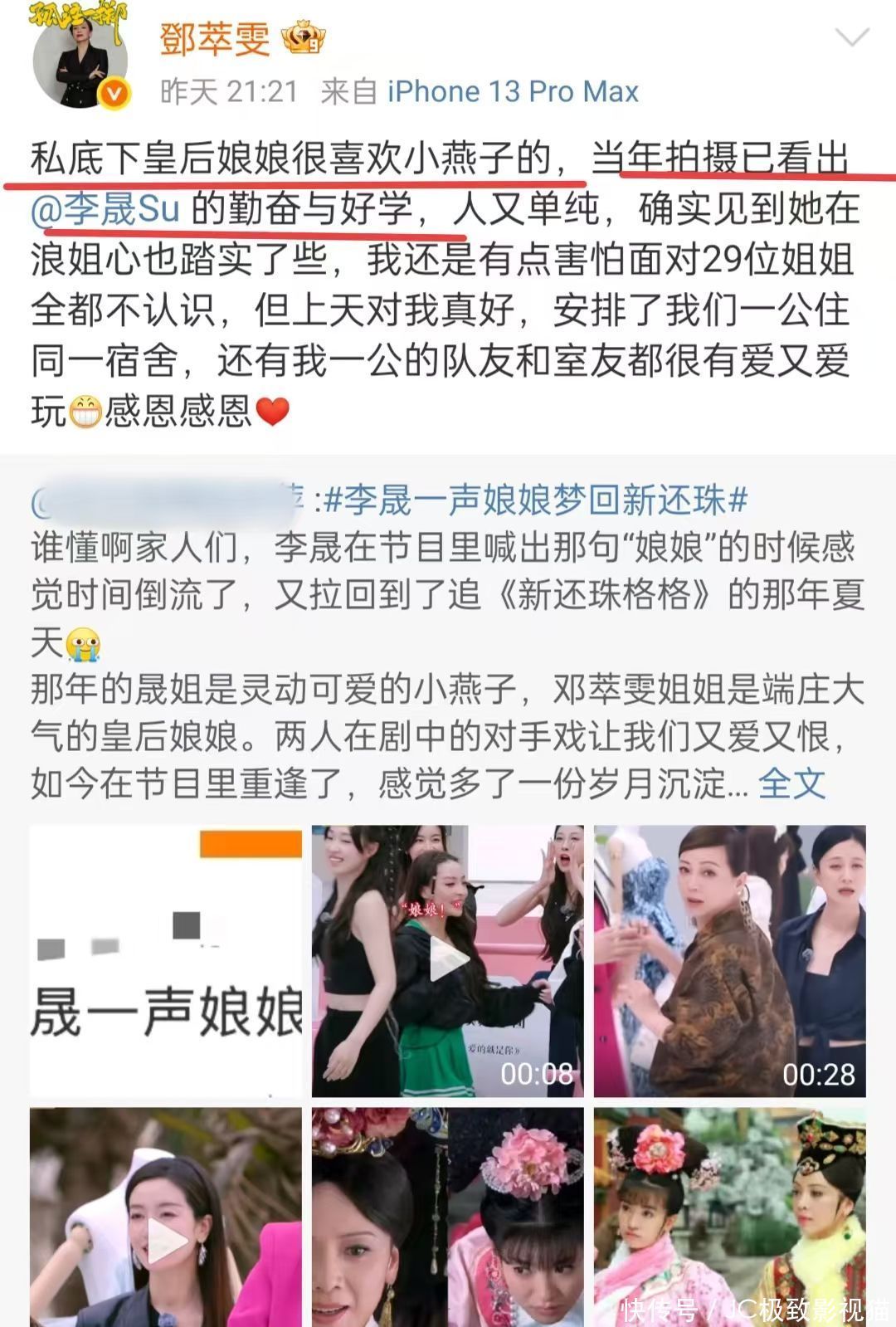 尤其是李晟,她当年可是热播剧女主,主演的《新还珠格格》虽然极具争议,但是热度影响力都不低,是很多人的童年和青春。